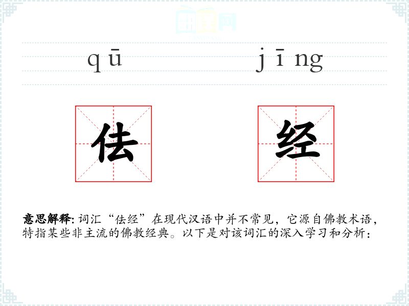 词汇“佉经”在现代汉语中并不常见,它源自术语,特指某些非主流的经典。以下是对该词汇的深入学*和分析: