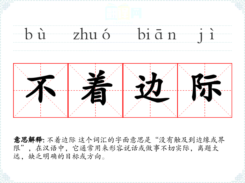 不着边际 这个词汇的字面意思是“没有触及到边缘或界限”,在汉语中,它通常用来形容说话或做事不切实际,离题太远,缺乏明确的目标或方向。