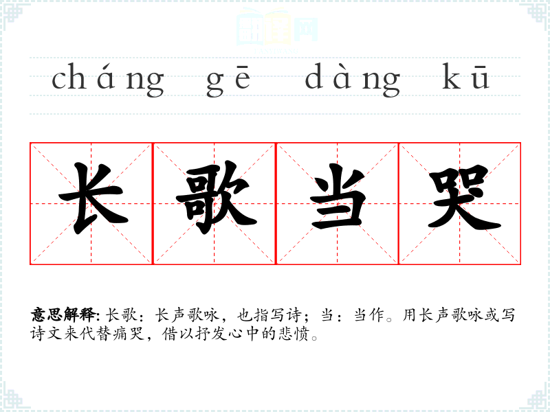 长歌:长声歌咏,也指写诗;当:当作。用长声歌咏或写诗文来代替痛哭,借以抒发心中的悲愤。