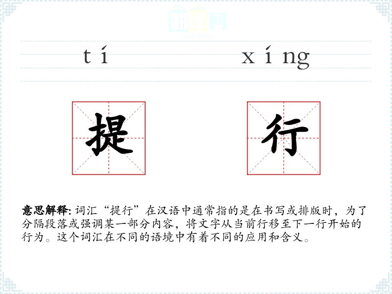 “提行”字面意思是指将文字从当前行提升到下一行开始。在排版和编辑中,这通常是为了增强文本的可读性或强调某个部分。