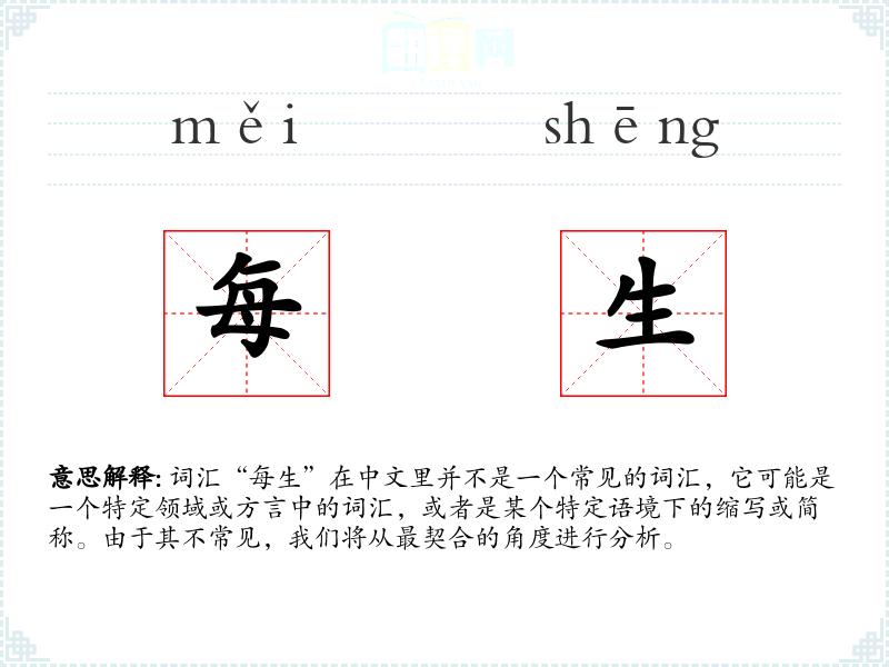 词汇“每生”在中文里并不是一个常见的词汇,它可能是一个特定领域或方言中的词汇,或者是某个特定语境下的缩写或简称。由于其不常见,我们将从最契合的角度进行分析。