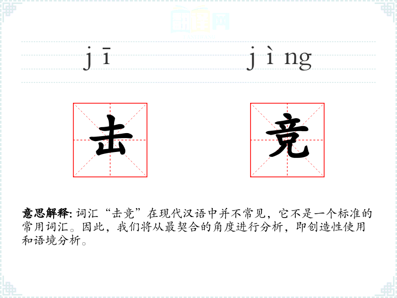 词汇“击竞”在现代汉语中并不常见,它不是一个标准的常用词汇。因此,我们将从最契合的角度进行分析,即创造性使用和语境分析。