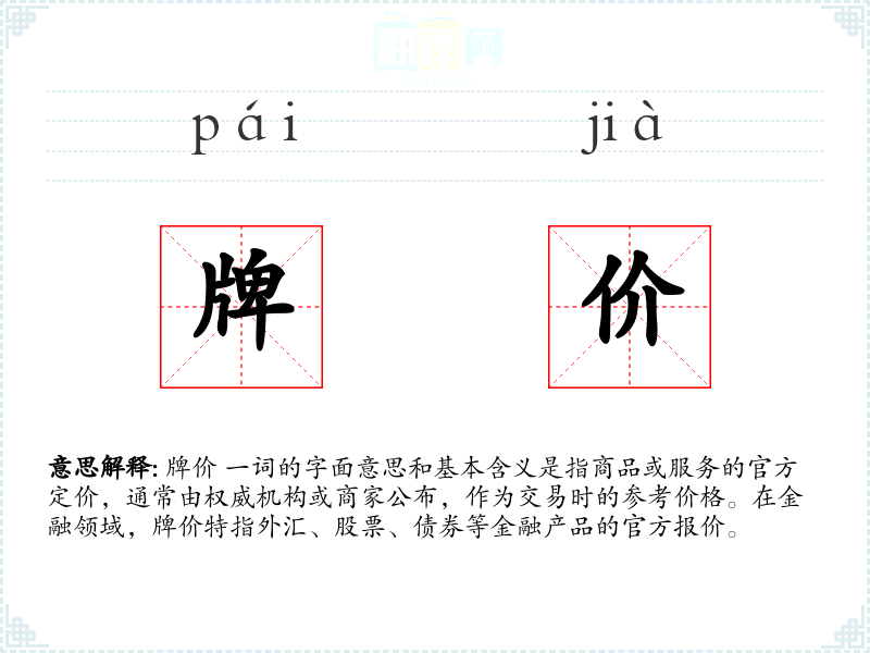 "牌价"的意思解释、牌价是什么意思由翻译网汉语词典查词提供。