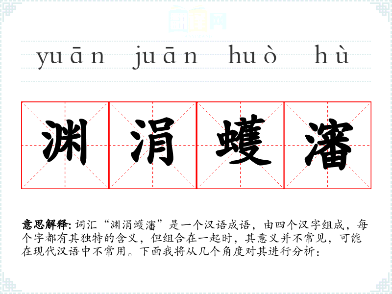 词汇“渊涓蠖瀋”是一个汉语成语,由四个汉字组成,每个字都有其独特的含义,但组合在一起时,其意义并不常见,可能在现代汉语中不常用。下面我将从几个角度对其进行分析: