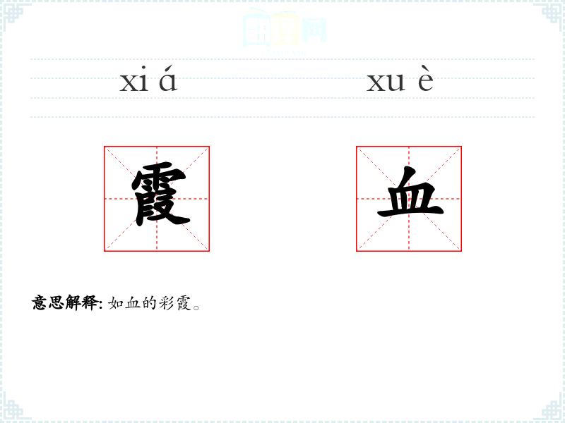 霞血的分字解释