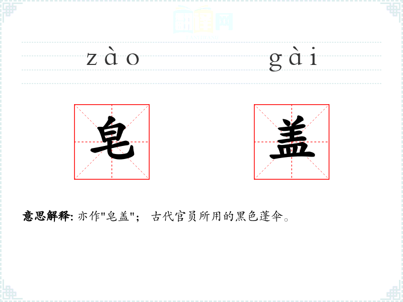 皂盖的分字解释