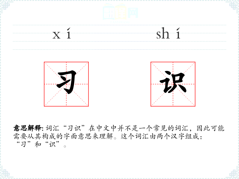 "习识"的意思解释、习识是什么意思由翻译网汉语词典查词提供。