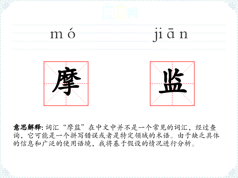 词汇“摩监”在中文中并不是一个常见的词汇,经过查询,它可能是一个拼写错误或者是特定领域的术语。由于缺乏具体的信息和广泛的使用语境,我将基于假设的情况进行分析。