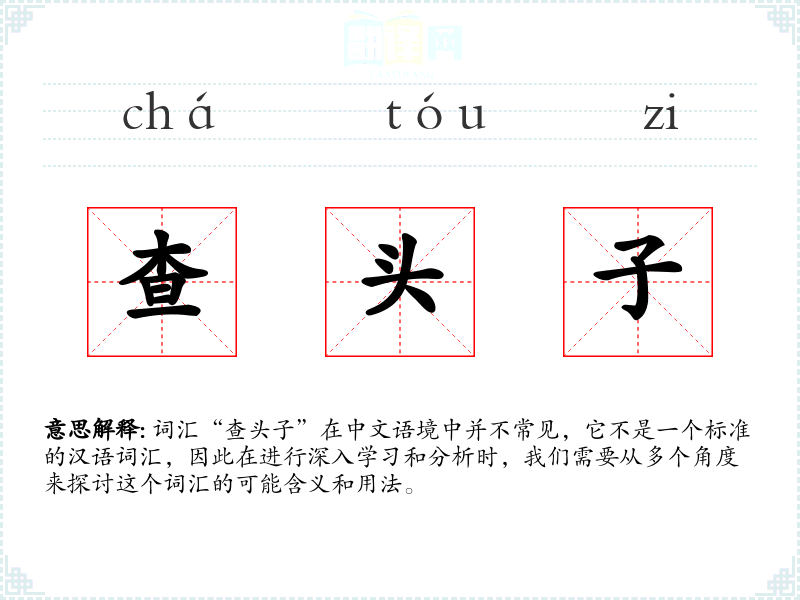词汇“查头子”在中文语境中并不常见,它不是一个标准的汉语词汇,因此在进行深入学习和分析时,我们需要从多个角度来探讨这个词汇的可能含义和用法。