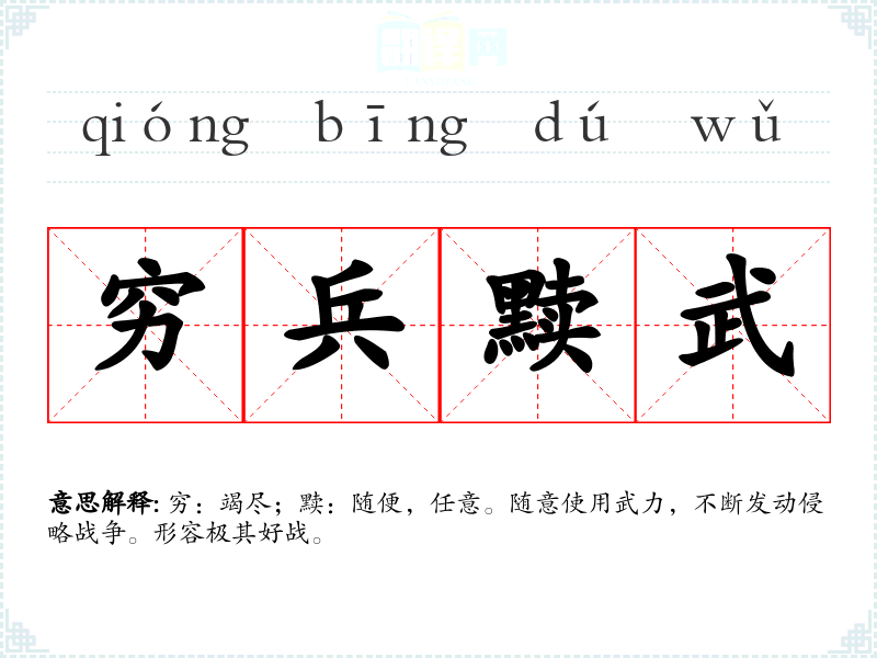 穷:竭尽;黩:随便,任意。随意使用武力,不断发动侵略战争。形容极其好战。