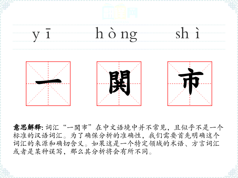 词汇“一閧市”在中文语境中并不常见,且似乎不是一个标准的汉语词汇。为了确保分析的准确性,我们需要首先明确这个词汇的来源和确切含义。如果这是一个特定领域的术语、方言词汇或者是某种误写,那么其分析将会有所不同。