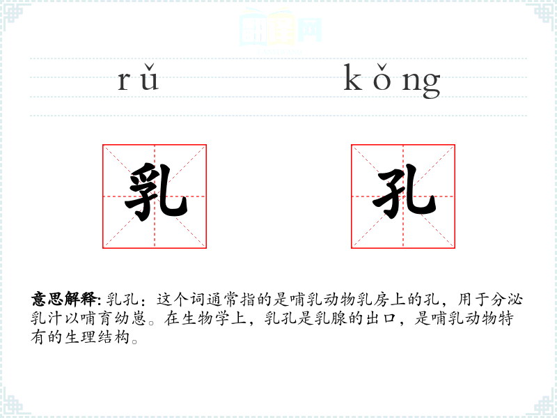 乳孔的词源较为直接,由“乳”(指乳房)和“孔”(指孔洞)组成。在语言演变中,这个词一直保持其生物学上的基本含义,没有发生显著的变化。