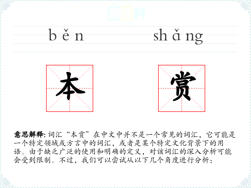 由于“本赏”不是一个标准词汇,我们无法探讨其词源和历史演变。