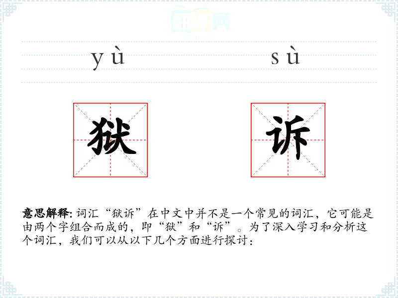 - 反义词:无(由于“狱诉”不是一个常用词汇,反义词可能不适用)