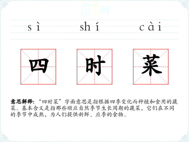 "四时菜"的意思解释、四时菜是什么意思由翻译网汉语词典查词提供。