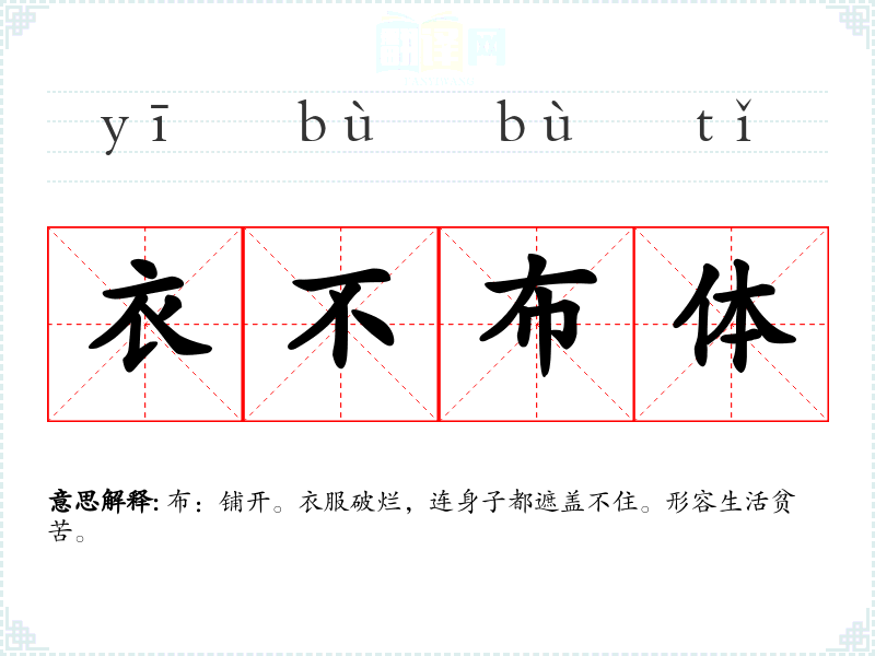 布:铺开。衣服破烂,连身子都遮盖不住。形容生活贫苦。