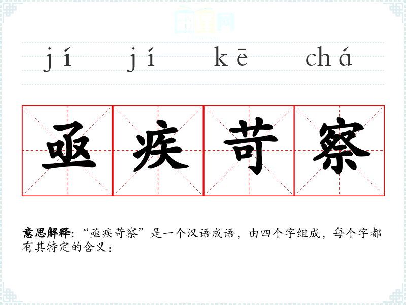 “亟疾苛察”是一个汉语成语,由四个字组成,每个字都有其特定的含义: