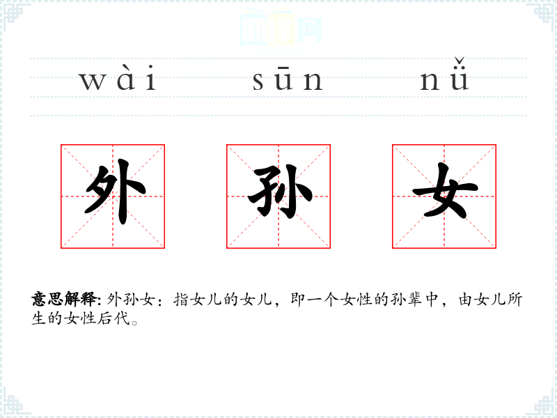 同义词:外孙(性别中性的称呼) 反义词:外孙(性别中性的称呼)
