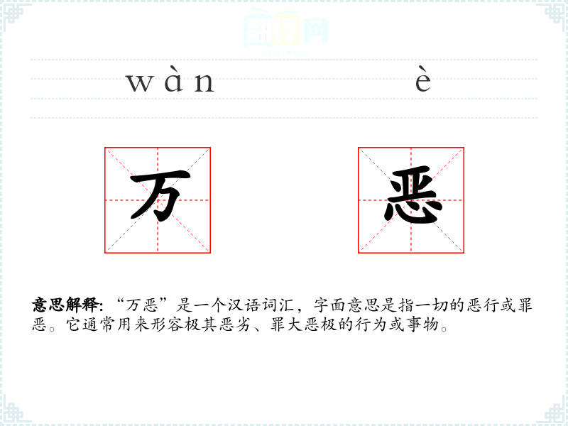 “万恶”的词源较为直接,由“万”和“恶”两个字组成,其中“万”表示数量极多,“恶”表示不好的行为或状态。在古代汉语中,“万恶”就已经被用来形容极端的恶行。