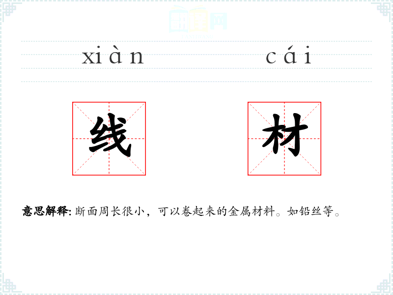 断面周长很小,可以卷起来的金属材料。如铅丝等。