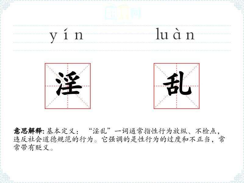 情感与联想: “淫乱”这个词通常会引起负面情感反应,如厌恶、鄙视。它可能让人联想到道德败坏、社会秩序的混乱。