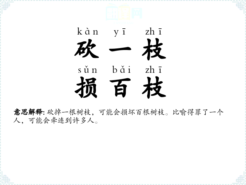 - kǎn yī zhī sǔn bǎi zhī砍一枝损百枝