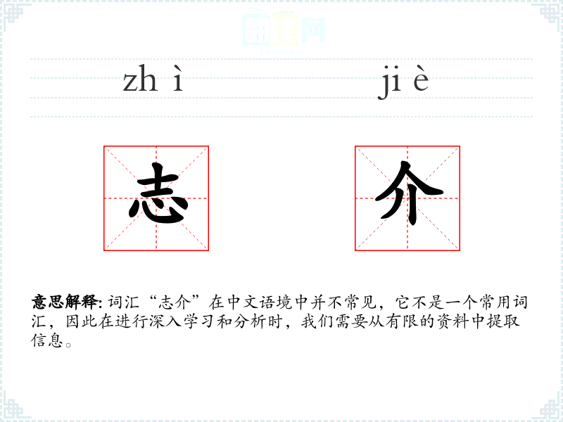 由于“志介”不是一个常用词汇,其词源和历史演变的信息非常有限。它可能是现代汉语中的一个组合词,用于特定语境或特定领域。