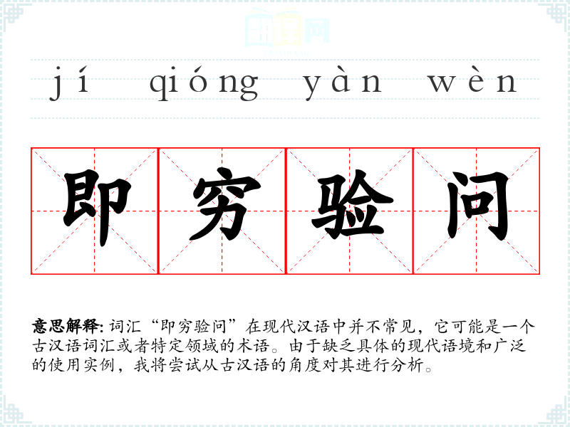 由于“即穷验问”不是一个常见的现代词汇,其词源和演变可能与古汉语的研究和使用有关。在古代文献中,类似的表达可能用于强调调查或研究的严谨性。