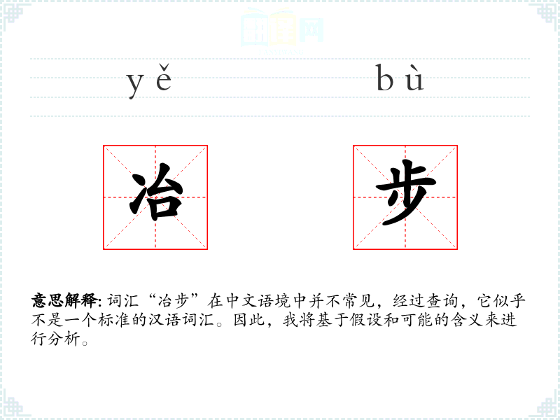 词汇“冶步”在中文语境中并不常见,经过查询,它似乎不是一个标准的汉语词汇。因此,我将基于假设和可能的含义来进行分析。