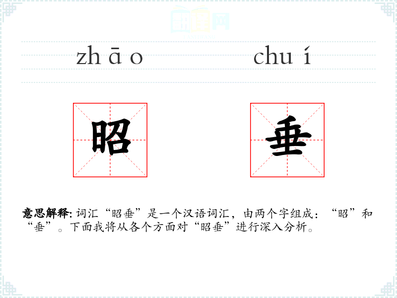 - 词源:“昭”和“垂”都是古代汉语中常用的字,组合起来形成了一个具有特定意义的词汇。