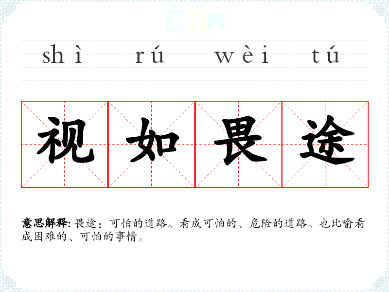 畏途:可怕的道路。看成可怕的、危险的道路。也比喻看成困难的、可怕的事情。