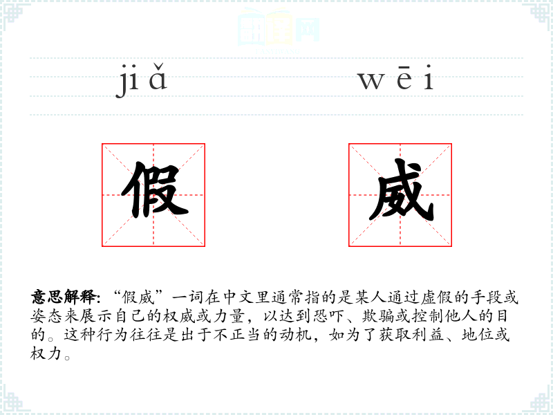 "假威"的意思解释、假威是什么意思由翻译网汉语词典查词提供。