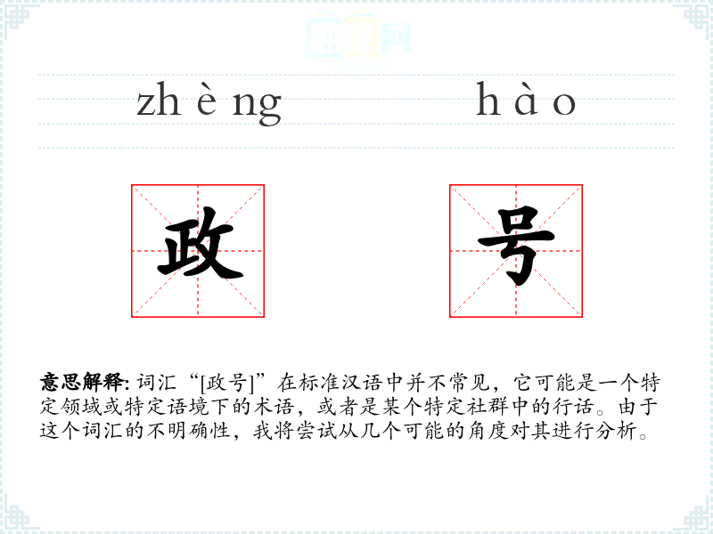 词汇“[政号]”在标准汉语中并不常见,它可能是一个特定领域或特定语境下的术语,或者是某个特定社群中的行话。由于这个词汇的不明确性,我将尝试从几个可能的角度对其进行分析。