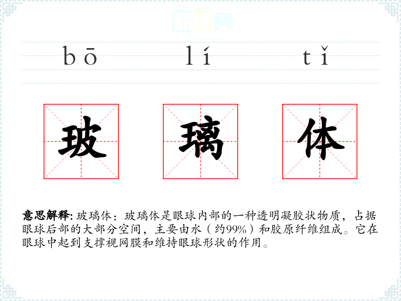"玻璃体"的意思解释、玻璃体是什么意思由翻译网汉语词典查词提供。