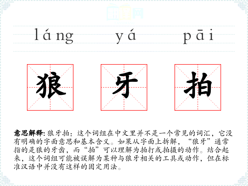 “狼牙拍”这个词组在汉语中没有明确的词源和历史演变记录。它可能是某些特定语境下的创造性使用,或者是误用。