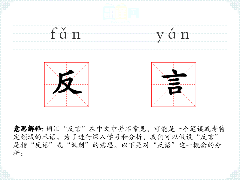 词汇“反言”在中文中并不常见,可能是一个笔误或者特定领域的术语。为了进行深入学习和分析,我们可以假设“反言”是指“反语”或“讽刺”的意思。以下是对“反语”这一概念的分析: