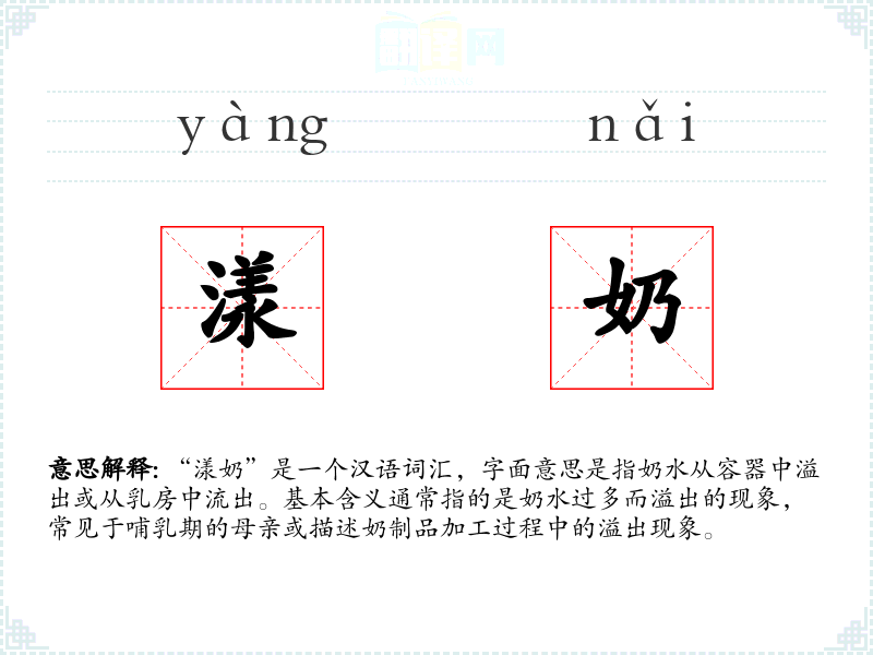 “漾奶”一词在汉语中较为常见,其词源可能与“漾”字的本义“水波荡漾”有关,引申为液体溢出的意思。在古代文献中,“漾”字常用来形容水波荡漾,后来逐渐用于形容其他液体的溢出。