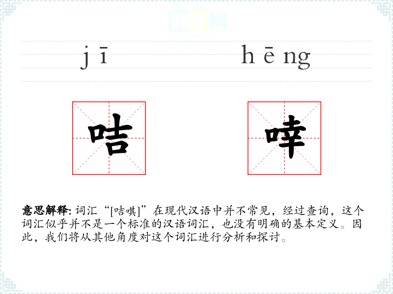 词汇“[咭唭]”在现代汉语中并不常见,经过查询,这个词汇似乎并不是一个标准的汉语词汇,也没有明确的基本定义。因此,我们将从其他角度对这个词汇进行分析和探讨。