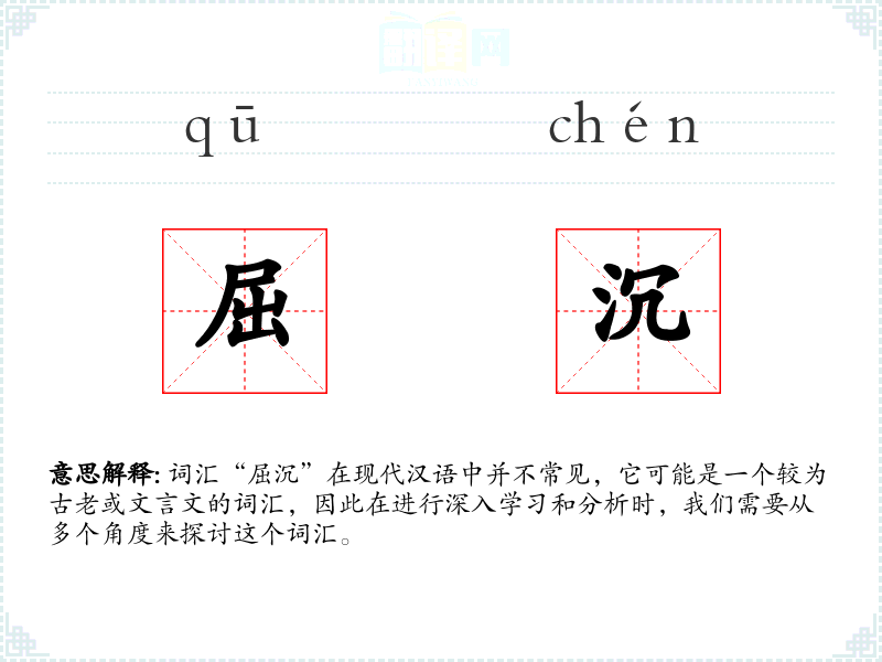 词汇“屈沉”在现代汉语中并不常见,它可能是一个较为古老或文言文的词汇,因此在进行深入学*和分析时,我们需要从多个角度来探讨这个词汇。