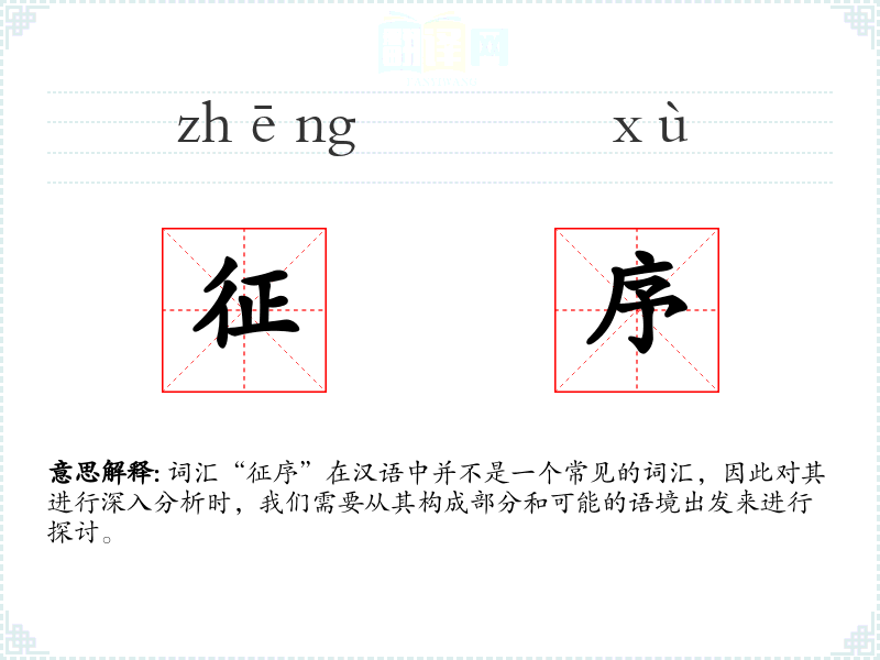 词汇“征序”在汉语中并不是一个常见的词汇,因此对其进行深入分析时,我们需要从其构成部分和可能的语境出发来进行探讨。
