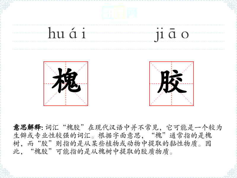 同义词:树胶、植物胶 反义词:(由于“槐胶”较为特殊,反义词可能不明显)