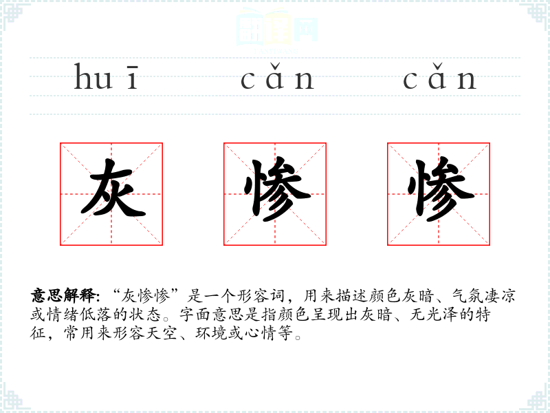 "灰惨惨"的意思解释、灰惨惨是什么意思由翻译网汉语词典查词提供。
