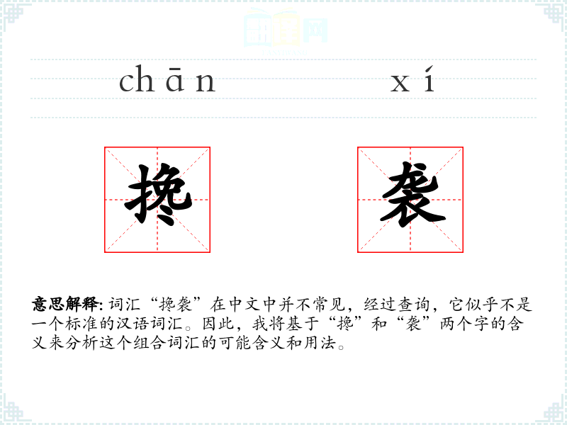 词汇“搀袭”在中文中并不常见,经过查询,它似乎不是一个标准的汉语词汇。因此,我将基于“搀”和“袭”两个字的含义来分析这个组合词汇的可能含义和用法。