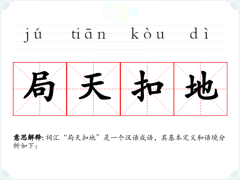 词汇“局天扣地”是一个汉语成语,其基本定义和语境分析如下: