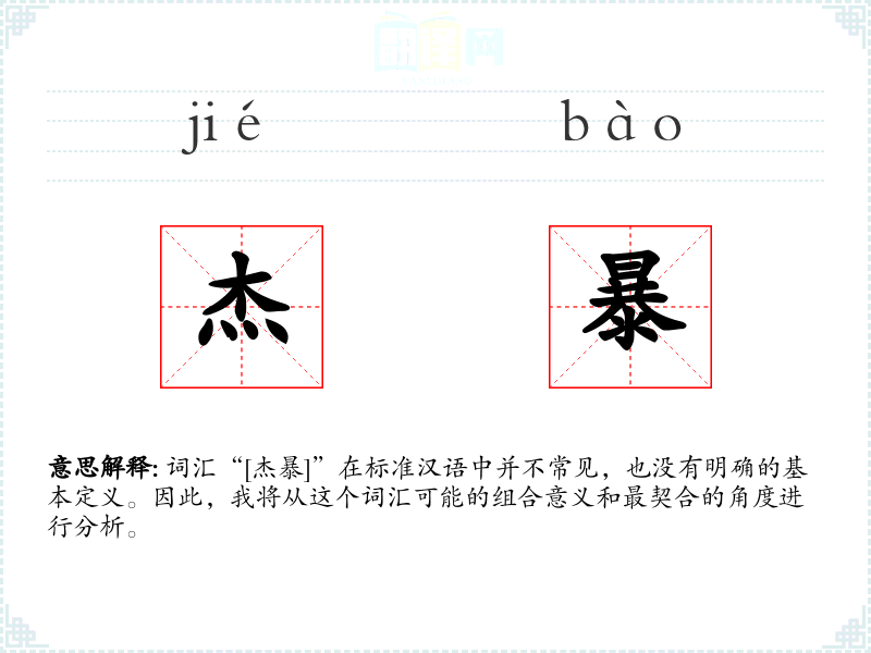 由于“[杰暴]”不是一个标准的汉语词汇,我们可以尝试从字面意思进行解释: