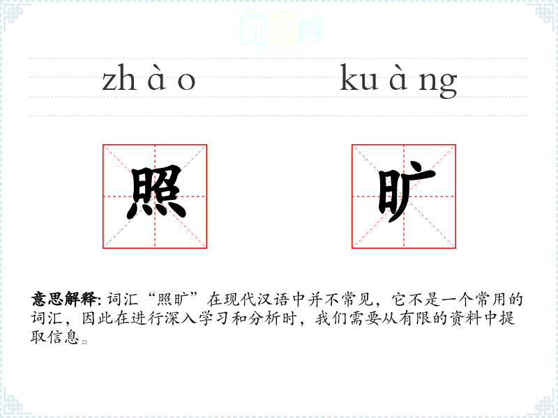 词汇“照旷”在现代汉语中并不常见,它不是一个常用的词汇,因此在进行深入学习和分析时,我们需要从有限的资料中提取信息。