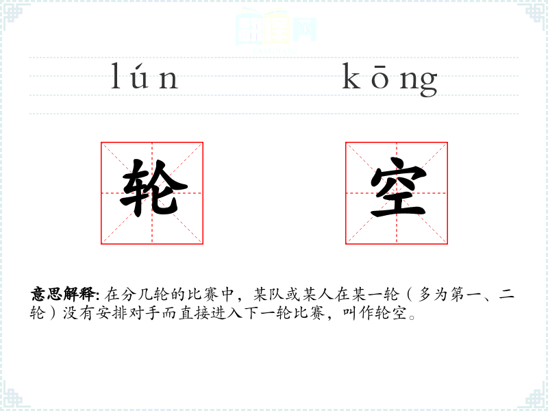 在分几轮的比赛中,某队或某人在某一轮(多为第一、二轮)没有安排对手而直接进入下一轮比赛,叫作轮空。