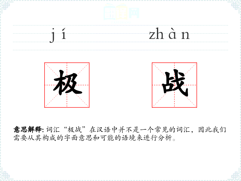 词汇“极战”在汉语中并不是一个常见的词汇,因此我们需要从其构成的字面意思和可能的语境来进行分析。