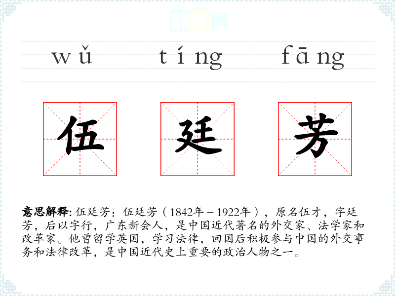 "伍廷芳"的意思解释、伍廷芳是什么意思由翻译网汉语词典查词提供。