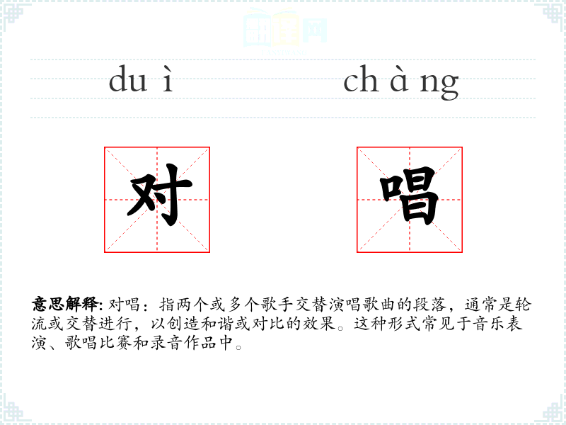 "对唱"的意思解释、对唱是什么意思由翻译网汉语词典查词提供。